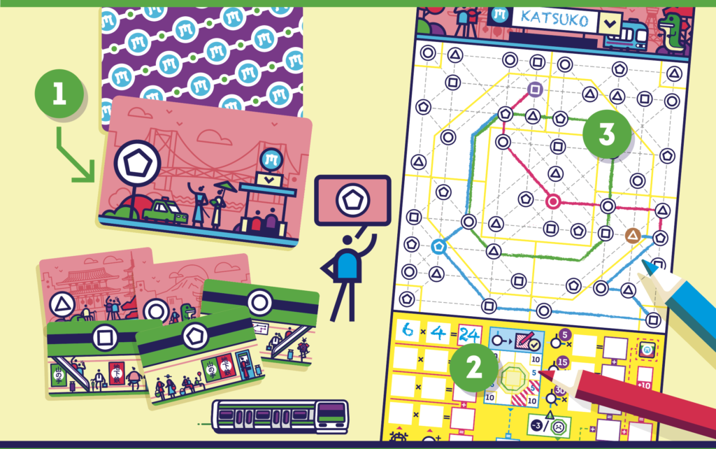 Próxima Estação – Tokyo tem um conceito muito simples e renova a experiência de jogar apenas com lápis e papel. Numa folha dividida em distritos e várias estações espalhadas pela área, terás de desenhar uma linha que atravesse as estações e que chegue ao máximo de lugares possíveis.