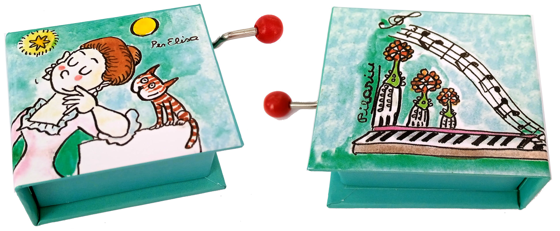 O som clássico de uma caixa de música é produzido pela vibração de um pente de metal que está em contacto com pequenas pontas de metal contidas num cilindro. Ao girar a manivela, é accionado um mecanismo formado por uma série de rodas dentadas que transmitem o movimento ao cilindro musical.