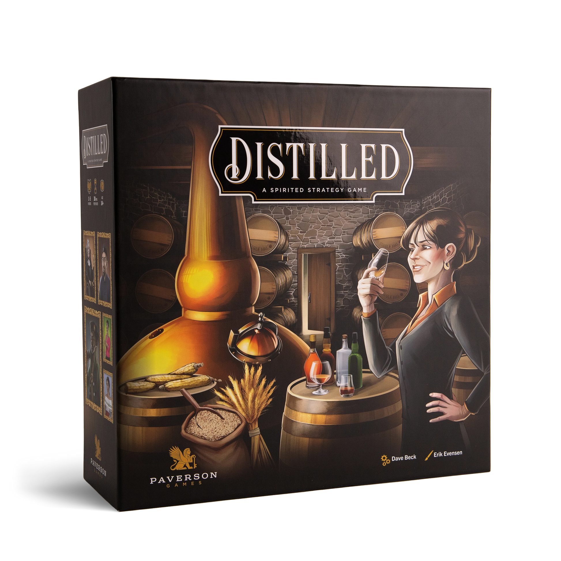 Distilled é um jogo estratégico altamente temático sobre a produção de bebidas alcoólicas numa destilaria, com gestão de recursos e elementos de "tenta a tua sorte".