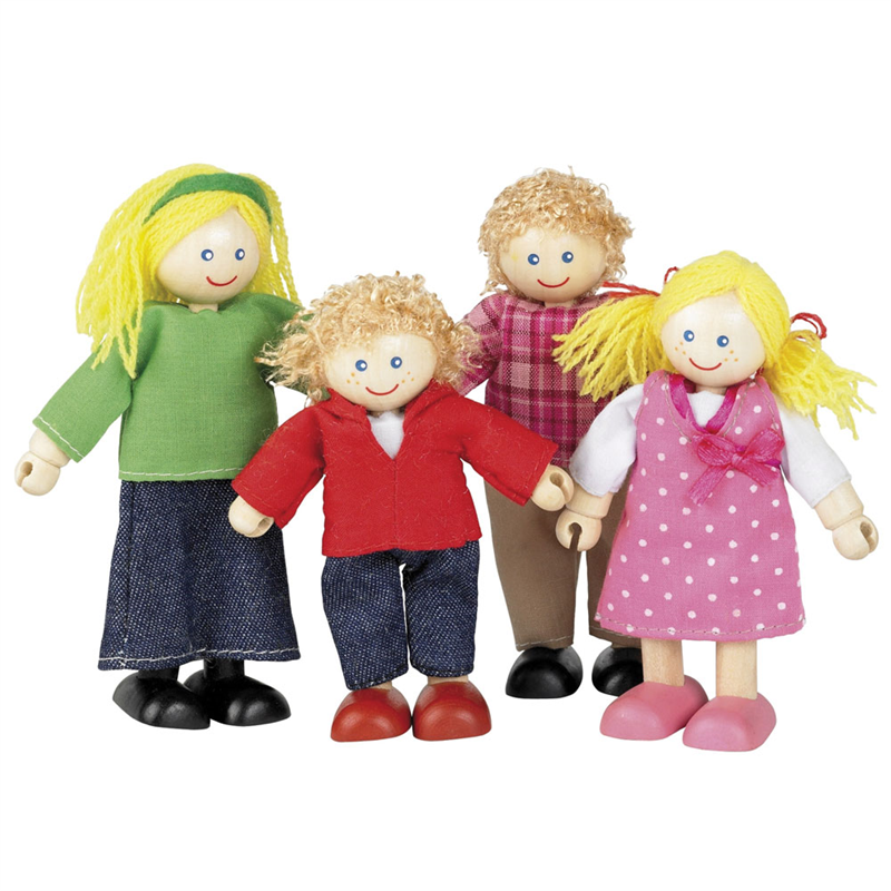 O conjunto inclui um pai, uma mãe e dois filhos (uma rapariga e um rapaz). Ideais para casas de bonecas à escala 1:12. Uma ótima forma de encorajar a construção de histórias, a imaginação, a coordenação e a destreza.