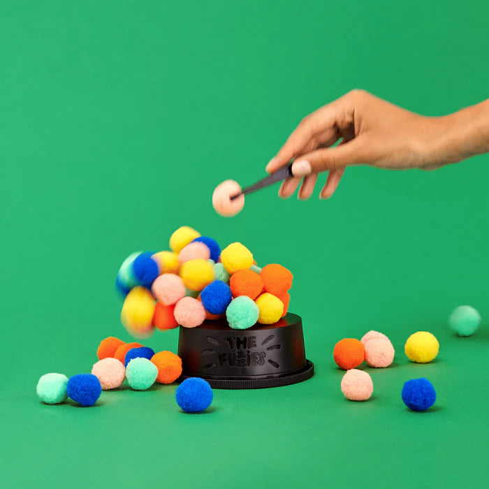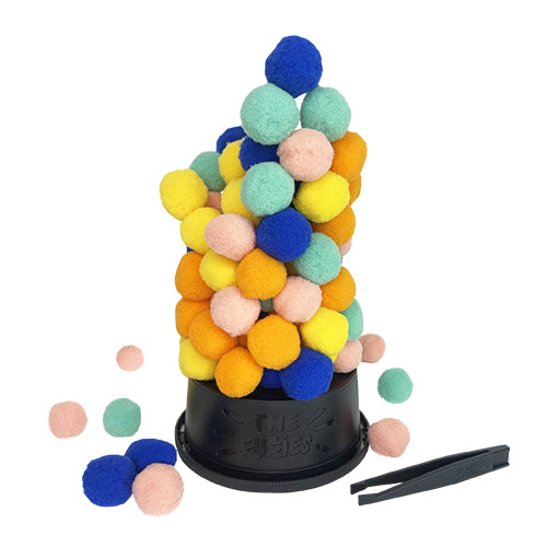 Tira um cartão que te dirá a cor do fuzzy que tens de tirar da torre, usando uma pinça ou os dedos. Volta a pô-lo em qualquer lugar mais alto na torre. Se tiveres sucesso, o próximo jogador continua, mas se alguma bola cair, tens de retirar o número de cartas iguais ao número de bolas que caíram e fazer o desafio na tua próxima jogada (por exemplo, remover um Fuzzy enquanto cobres o teu olho).