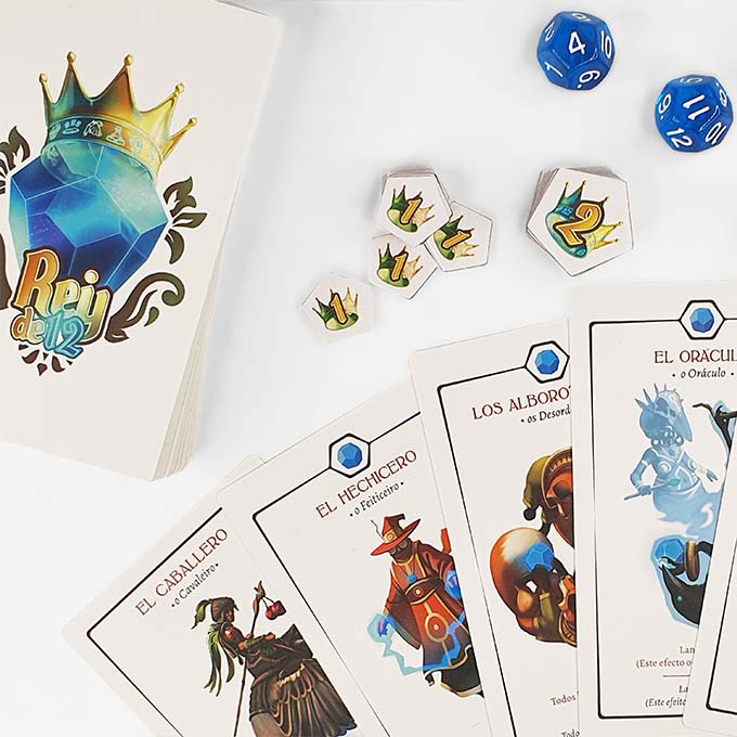 Em Rei de 12, cada jogador tem o mesmo conjunto de sete cartas de personagens. Em cada ronda, cada jogador escolhe um deles e joga-o de forma oculta. Quando todos o fizerem, são revelados. Se dois ou mais jogadores escolherem a mesma carta, estas são anuladas. Caso contrário, os seus efeitos são resolvidos, afectando a esfera mágica de cada jogador (um dado d12). Os valores dos dados são, então, comparados. Se dois jogadores tiverem o mesmo valor, são negados.