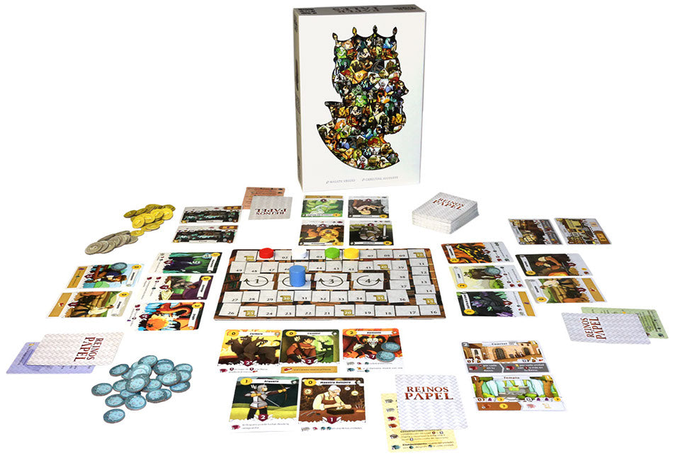 Reinos de Papel é um jogo de cartas em que os jogadores acumulam pontos para reescrever a História a seu favor. Em cada turno, escolhem a melhor combinação de unidades: elas simbolizam a glória do seu reino através das suas guerras e conquistas. No entanto, o espaço em breve será escasso e a passagem do tempo não perdoa...